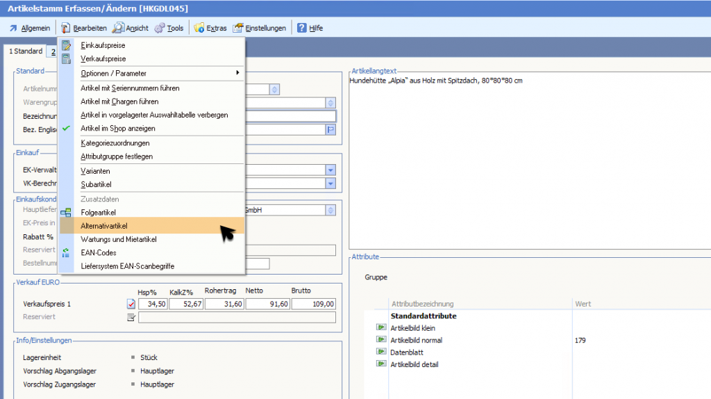 Die Warenwirtschaft ermöglicht die Verwaltung von Alternativartikeln.