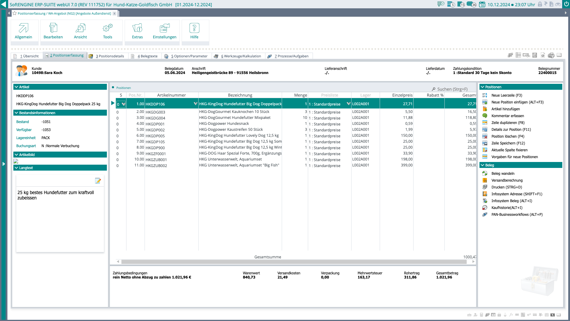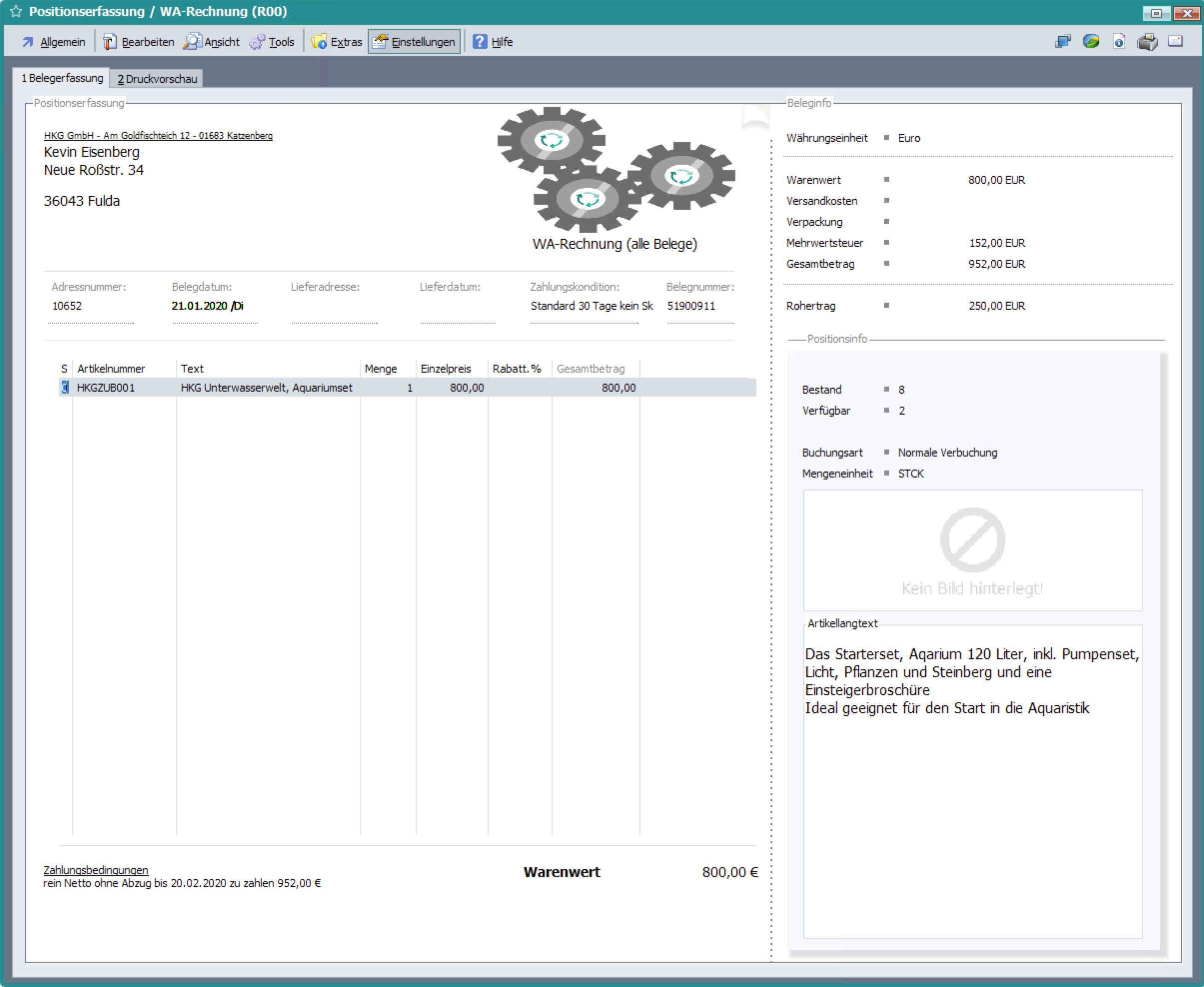 Wechseln Sie zur Karteikarte Positionserfassung.