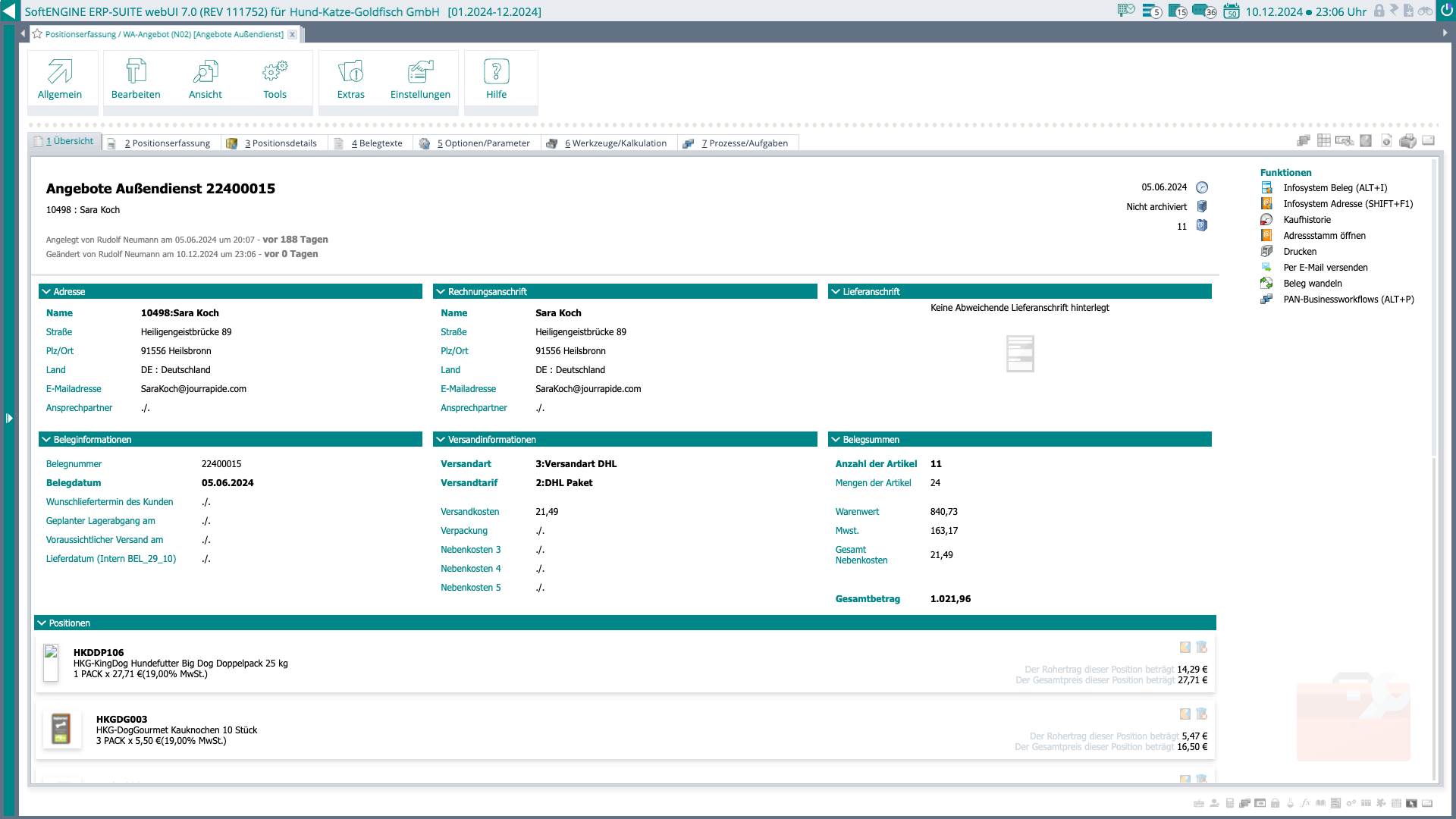 Rechts stehen Ihnen belegbezogene Funktionen im Schnellzugriff zur Verfügung.