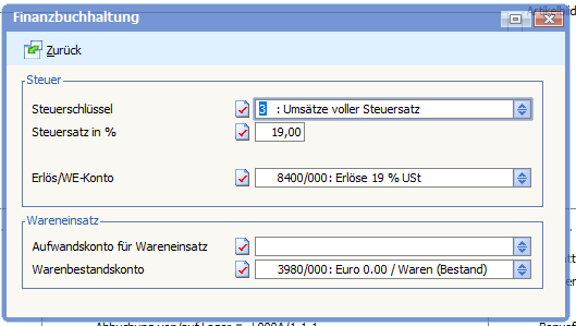 Das Feld POS_779_1 „Wareneinsaz übergeben“ wurde aus der Optionsmaske „Finanzbuchhaltung“ in den Postionsdetails entfernt, da es bei der aktuellen Wareneinsatzübergabe nicht berücksichtigt wird.