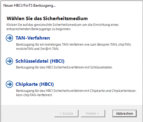 Seit Rev. 45903/Patch und Rev. 45838/Beta ist der Menüpunkt „E-Banking (F11)“ im Bankenstamm nur dann aktiv, wenn unter Bearbeiten -> Zahlungsverkehr eine der folgenden Einstellungen getroffen wurde: