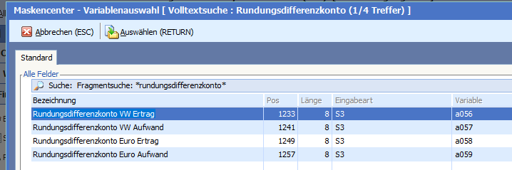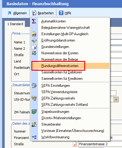 Die Rundungsdifferenzkonten in den Baisdaten Finanzbuchhaltung müssen nicht mehr hinterlegt sein und der entsprechende Menüeintrag wird nicht mehr angezeigt.