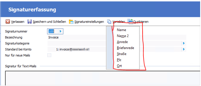 Bei der Signaturerfassung kann man auf Variablen zurückgreifen.