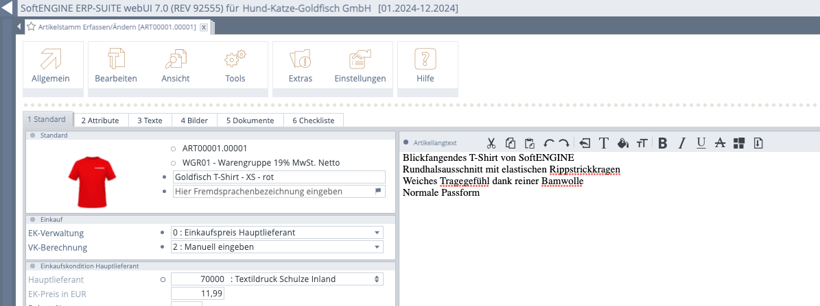 Die Arbeit mit der SoftENGINE ERP-Suite App ermöglicht Ihnen die Nutzung einer integrierten Rechtschreibprüfung.