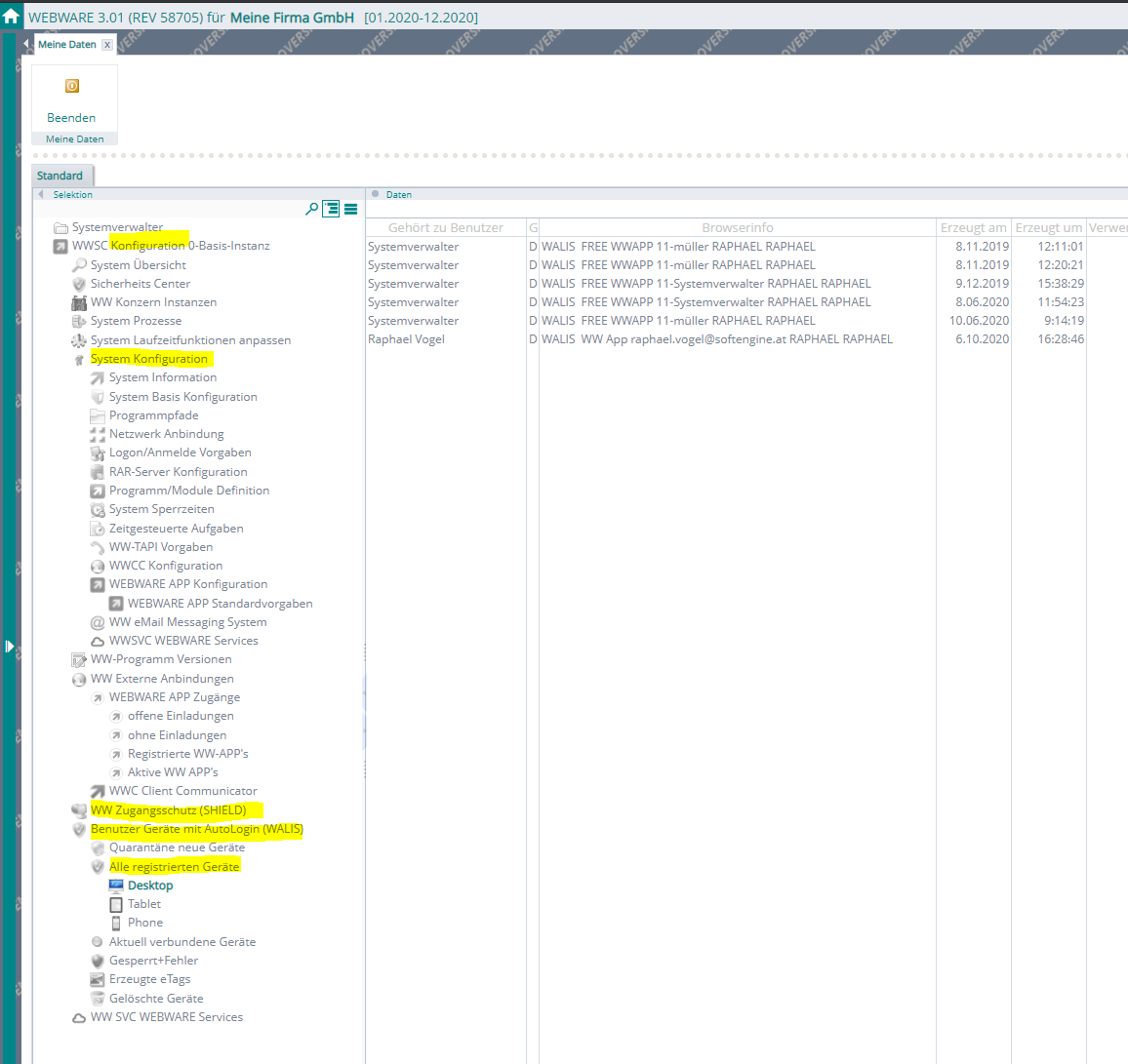 Im WEBWARE System-Cockpit gibt es die Möglichkeit einzelnen Benutzer abgestufte Rechte zu vergeben,