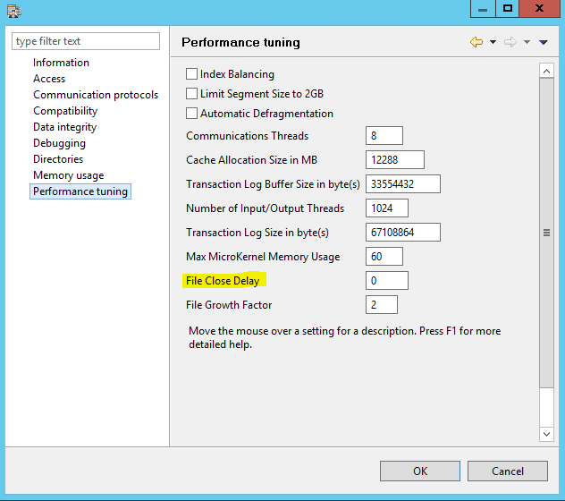 Gibt es Vorgaben wie die Pervasive/Actian Datenbank eingestellt werden muss?