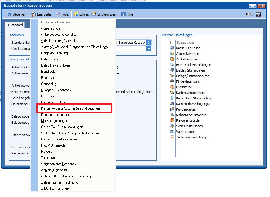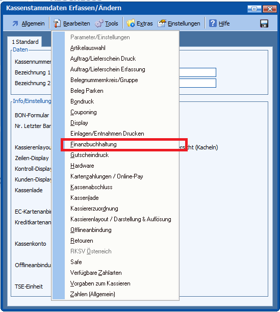 Kasse 4.1 – Bereich Kassenstammdaten