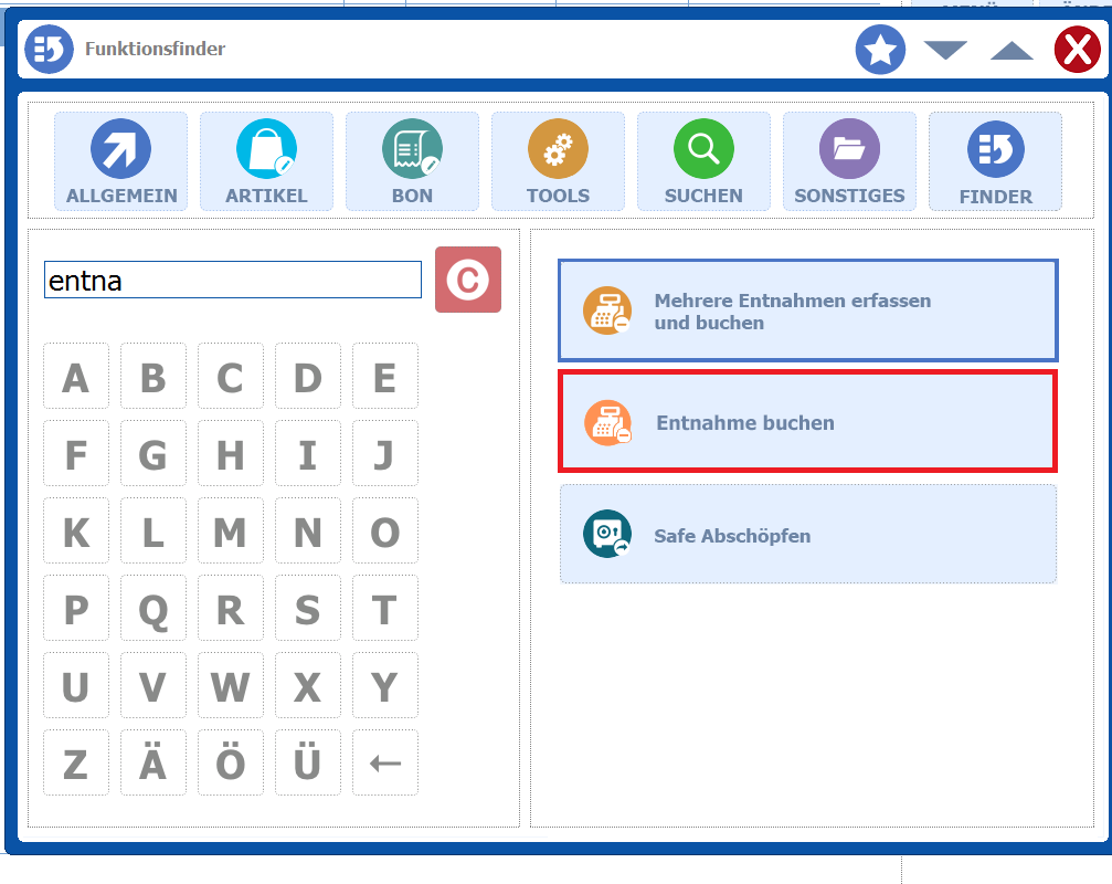 Kasse 4.1 – Bereich Entnahme