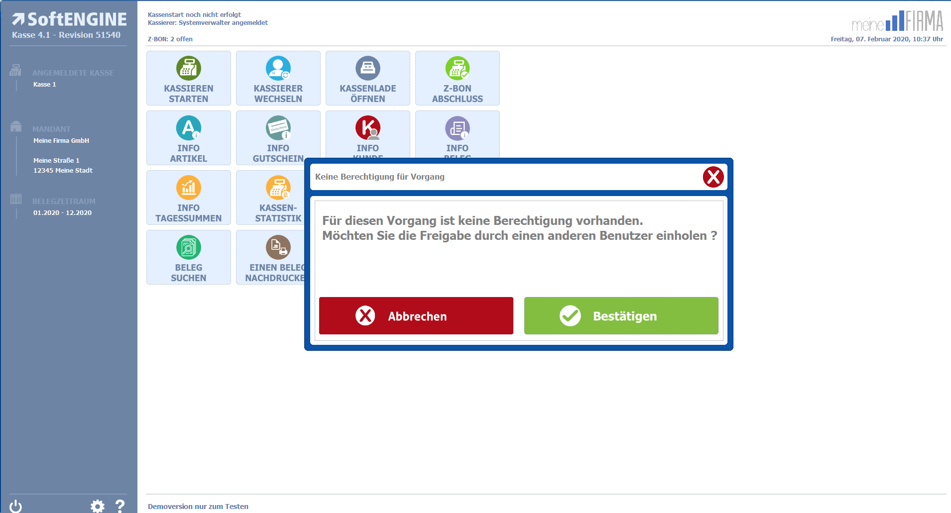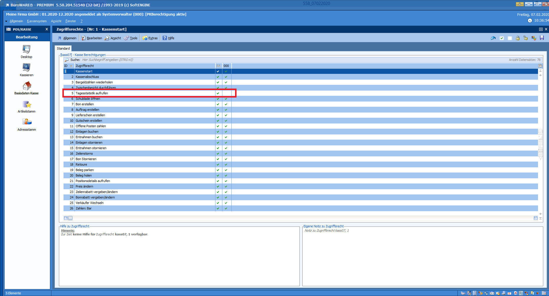 Kasse 4.1 – Bereich Berechtigungsfreigabe