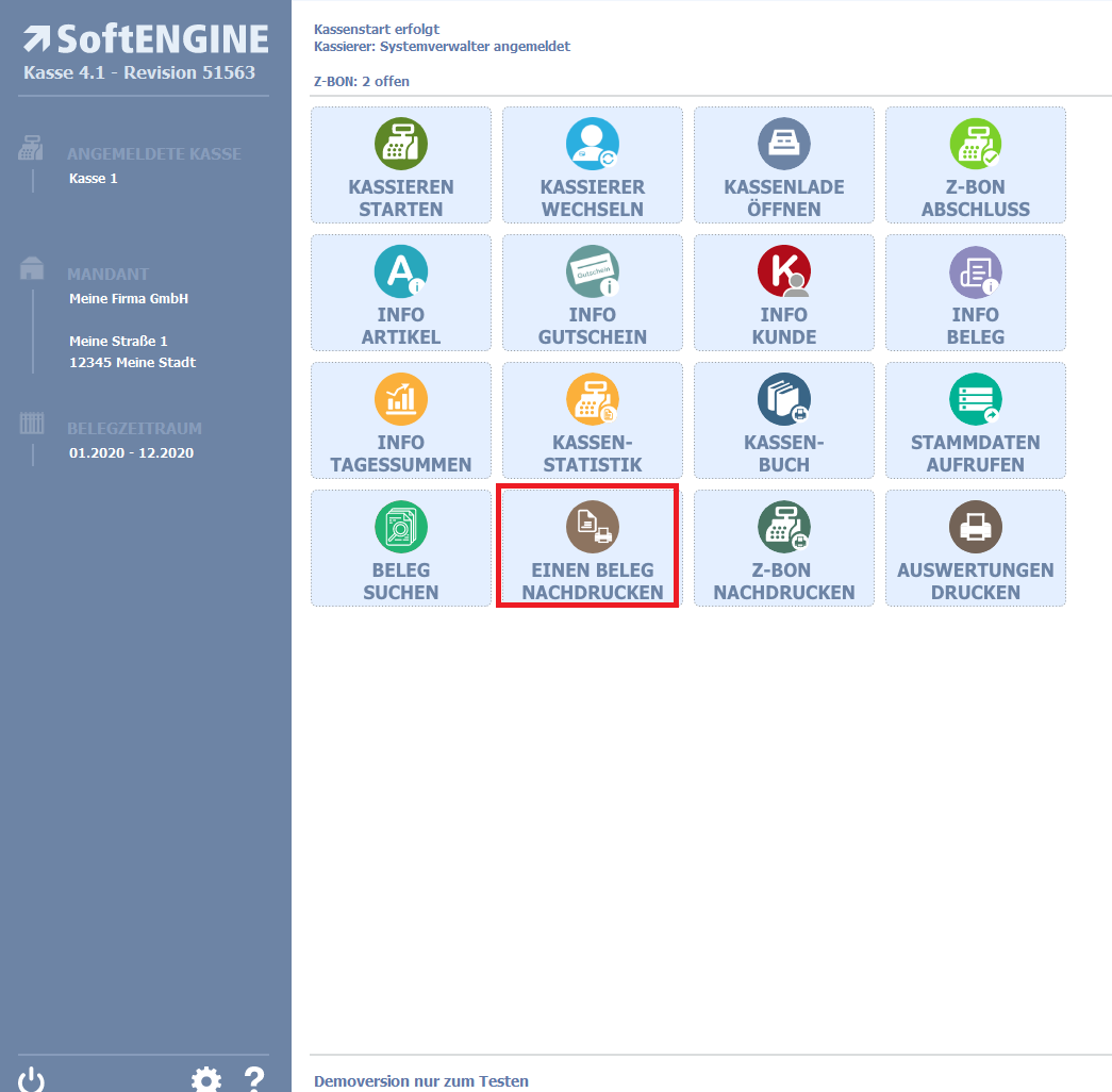 Kasse 4.1 – Bereich Belegnachdruck