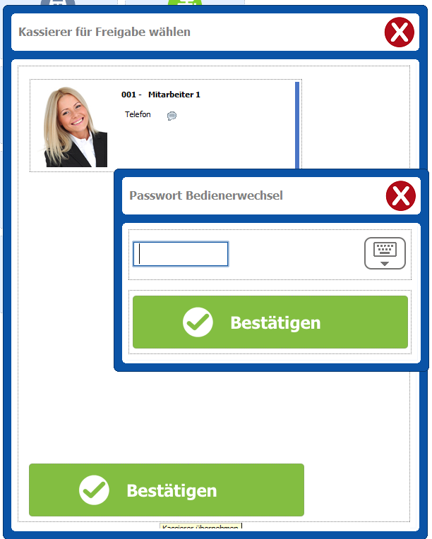 Mit dieser Programmänderung wird der Kassierer-PIN von einem Kassierer geprüft, wenn dieser einem Anderen einen Vorgang freischaltet, für den dieser keine Berechtigung hat. Die Prüfung wird nur verwendet, wenn kein Benutzer-Passwort hinterlegt ist.