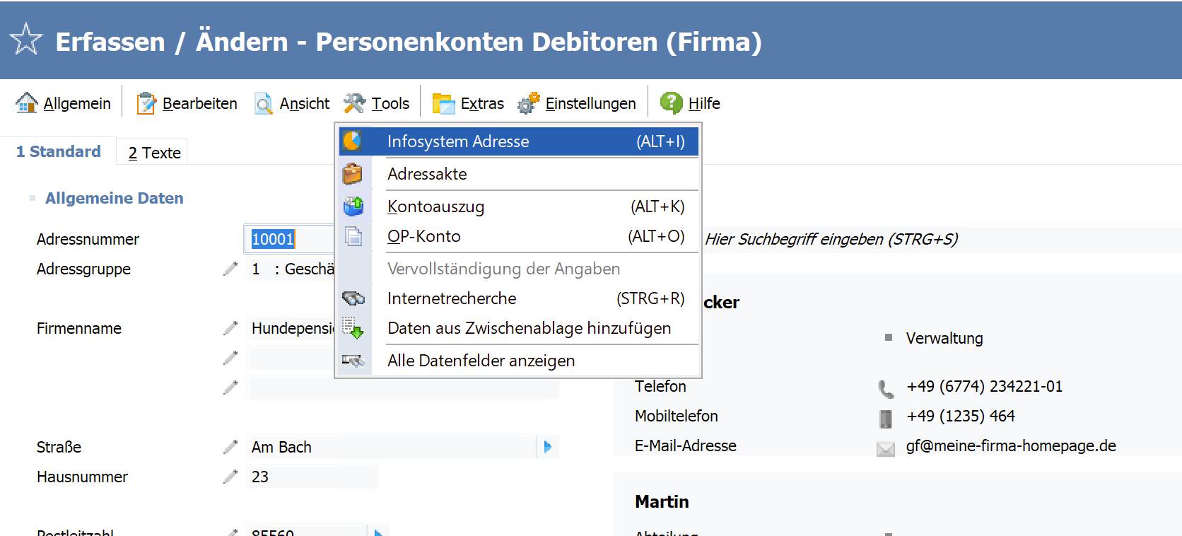 Sie finden das Infosystem in den Personenkonten im Menü „Tools“.