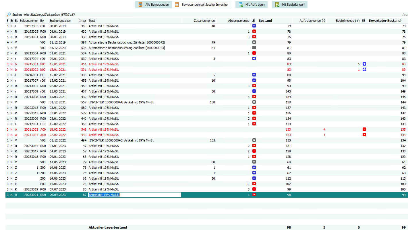 Es ist nun möglich, dass auch Bestandsdaten vor einer Inventur angezeigt werden.
