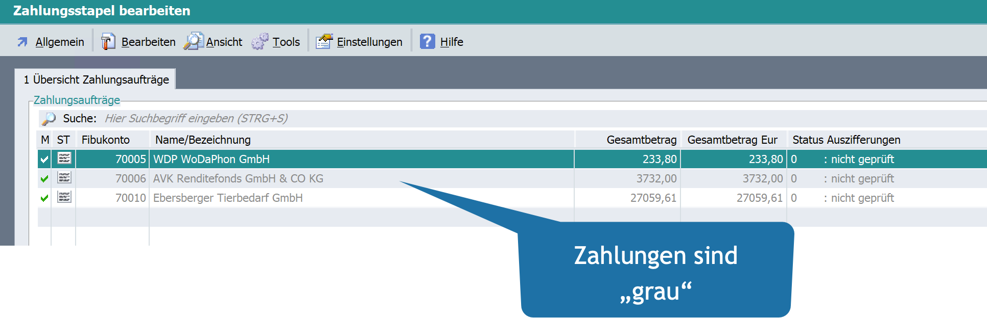 Aufgrund falscher Dispobeträge der Offenen Posten wurden dann Belege im Zahlungsstapel doppelt vorgeschlagen.