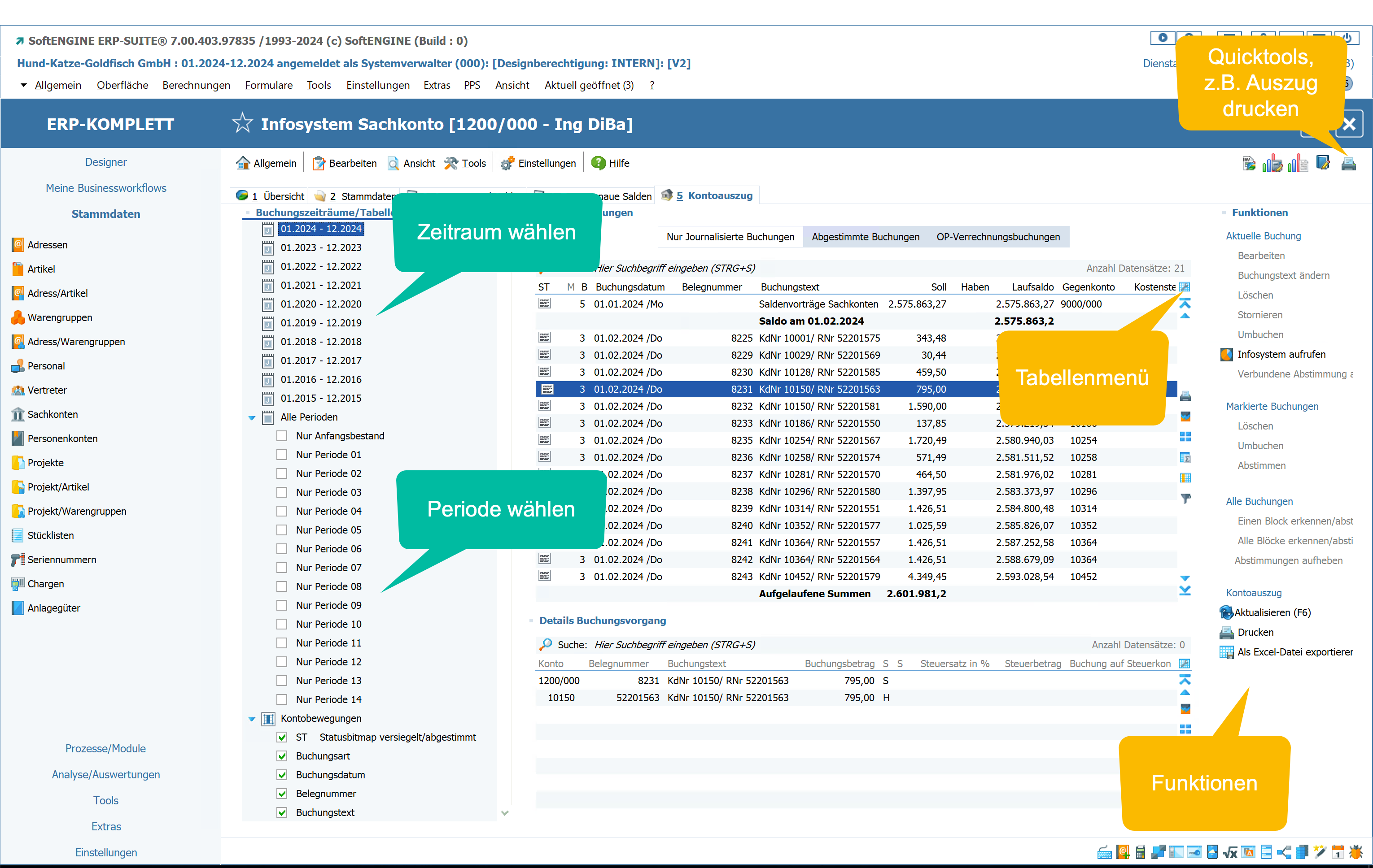 In der Finanzbuchhaltung stehen neben den Standardauswertungen, die auf Basis der Salden der Konten erstellt werden auch Auswertungen mit tagesaktuellen Salden zur Verfügung.