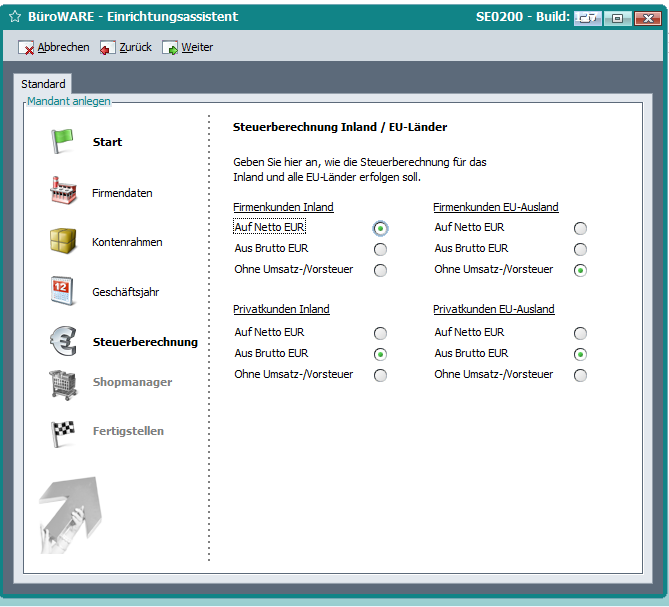 Vorkasse Steuerschlüssel Basisdaten