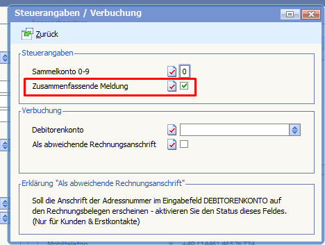Zusammenfassende Meldung – erforderliche Konteneinstellungen …