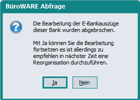 Nach dem Aktivieren des genannten Zugriffsrechtes ist eine Reorg der Kontoauszugsdateien notwendig. …