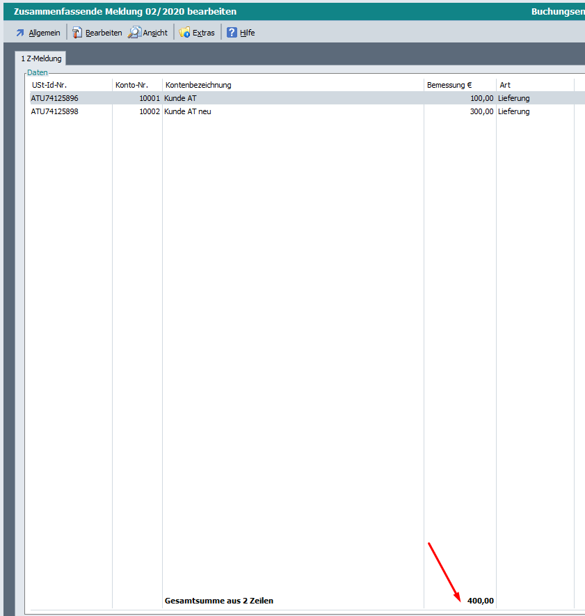 – eine Adresse (Kontonummer) mit Landesart „(EU)-Ausland“ und aktiviertem ZM Flag