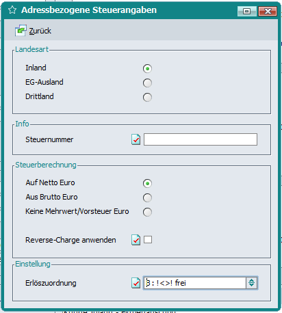 – diese Lieferadresse mit Landesart „Inland“, oder Landesart „Drittland“ definiert wurde