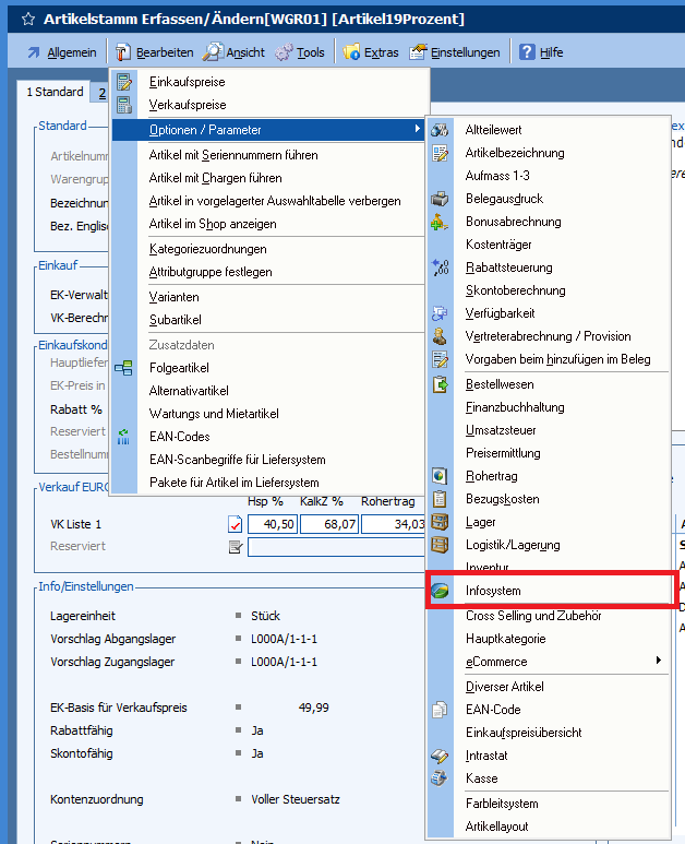 Die Information aus dem Artikelstamm wird in die Positionsdaten übernommen. In den Kennzahlen wird der Artikel auf Basis der Positionen ignoriert.