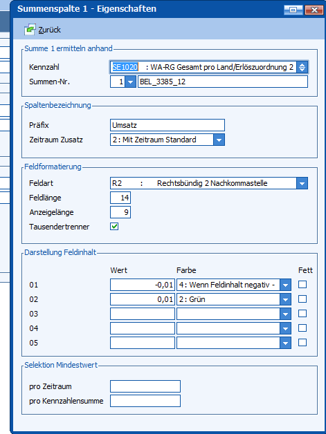 Die Alternative Darstellung wird angewendet, wenn in den Kennzahlenwerten eine farbige Einstellung hinterlegt ist.