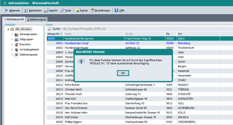 Hierfür werden folgende Zugriffsrechte beim Aufruf geprüft: