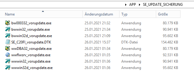 Mit dieser Programmänderung werden beim Setup die bestehenden EXEn in den Ordner „SE_UPDATE_SICHERUNG“ umkopiert.