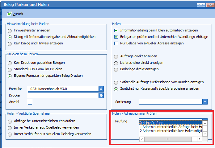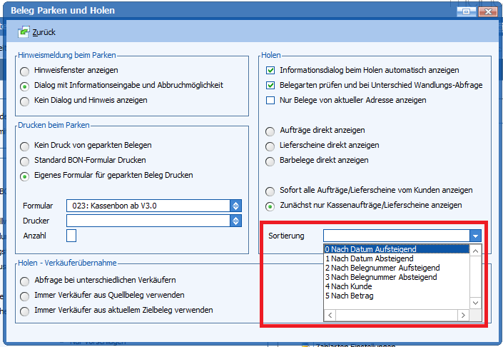 Mit dieser Programmänderung kann die Sortierung beim Holen eines Beleges angegeben werden.