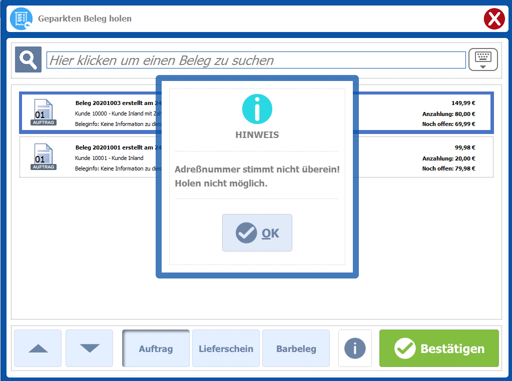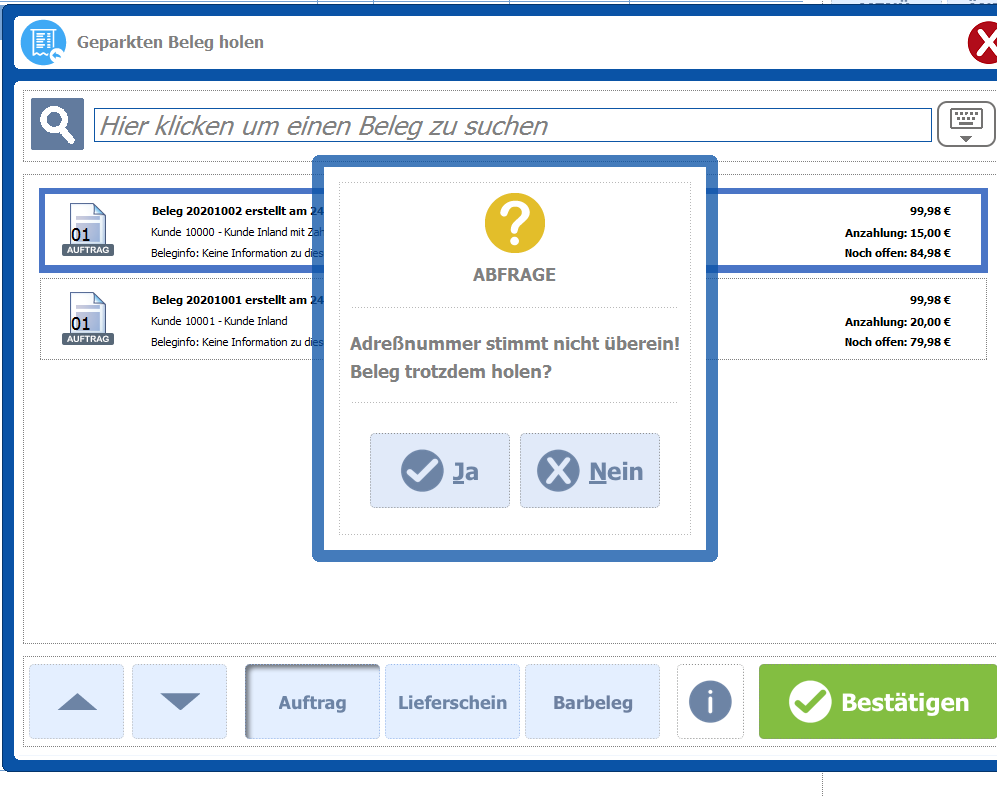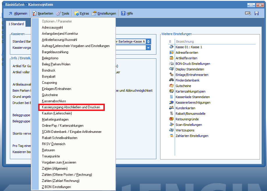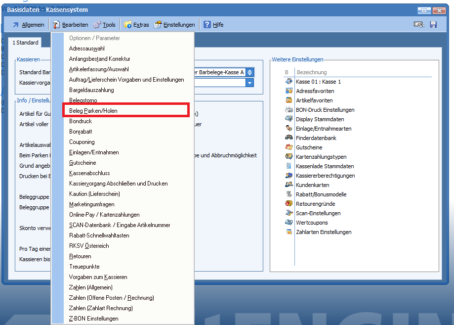 Kasse 4.1 –Â Bereich Beleg holen