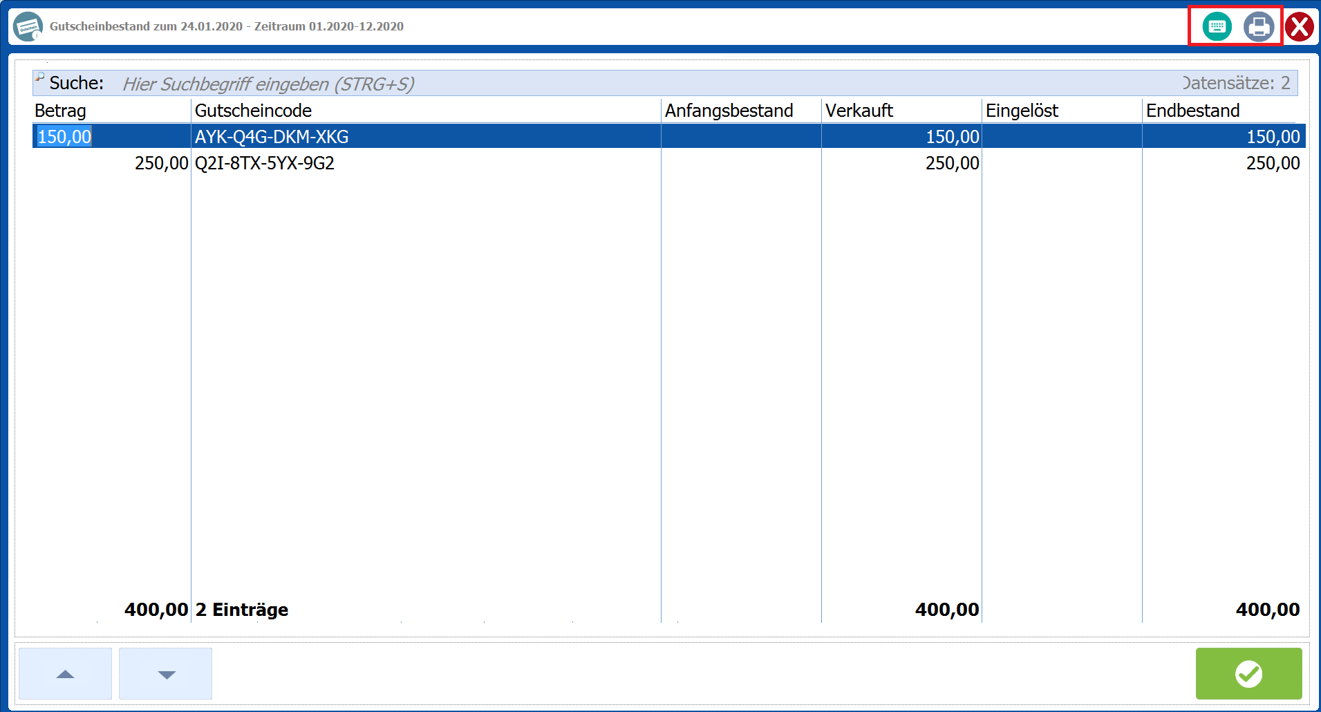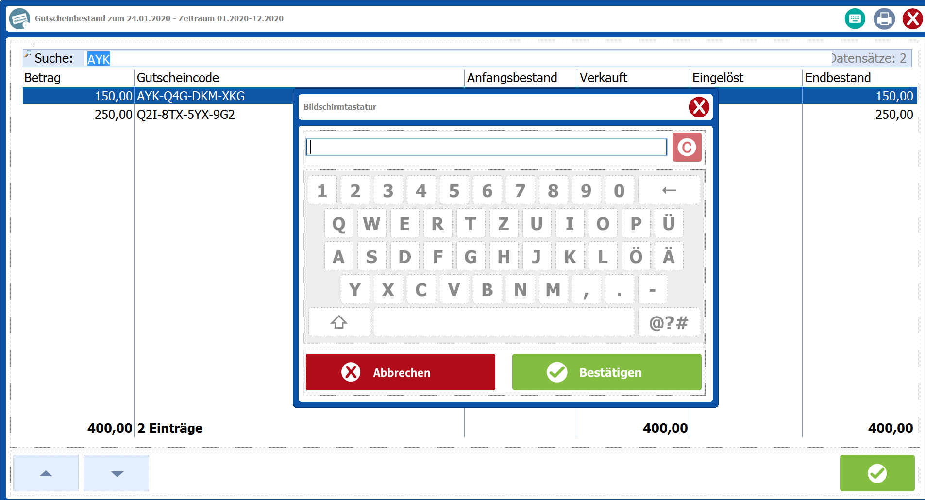 Ab dieser Programmänderung funktionieren die Quicktools zum Aufruf der Tastatur und der Druckerauswahl im Gutscheinbestand der Gutscheininfos, die man über den Kassendesktop aufrufen kann.