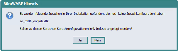 Wird das Modul aufgerufen, wird in der aktuellen Installation geprüft, ob es bereits Sprach-DTKs (zb. SE_C20FI_ENGLISH.DTK) gibt.