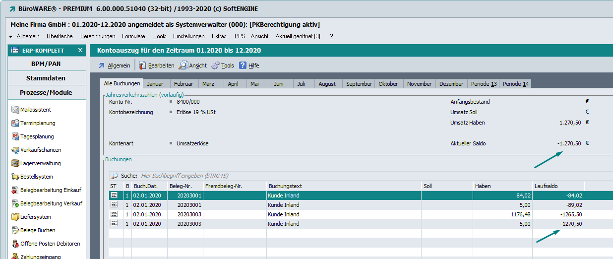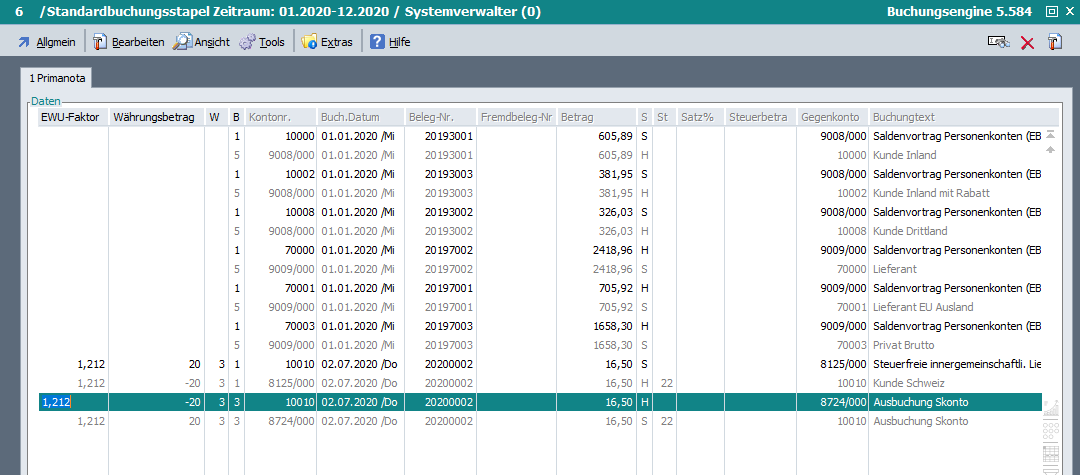 Unter Umständen konnte es zu Centdifferenzen im Kontoauszug zwischen Kontosaldo und Laufsaldo kommen. Dies wurde ab Rev. 51015/Beta und 51016/Patch. behoben.