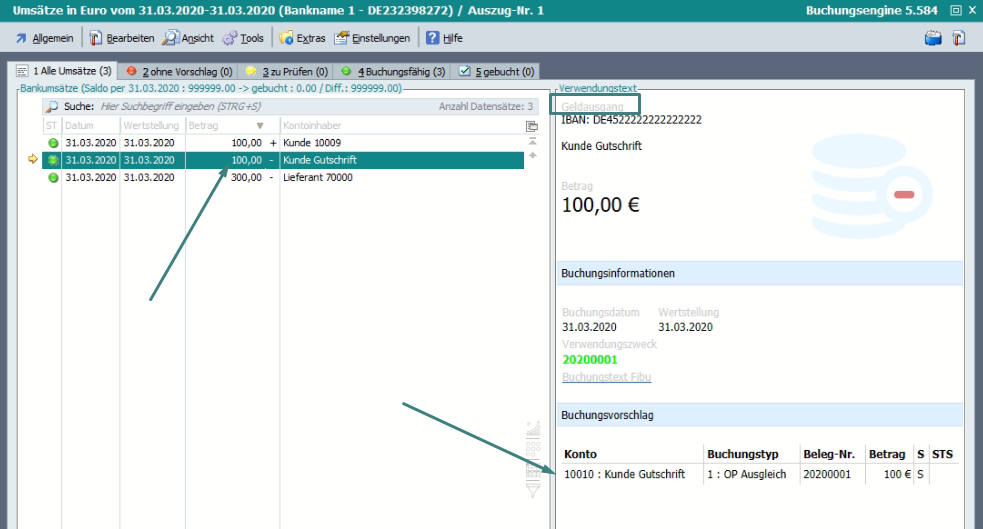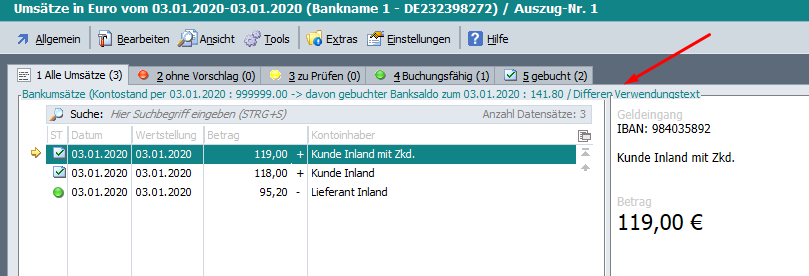 Wenn man auf der Umsatzzeile <STRG+F11> drückt oder unter Tools „Details zur Erkennung“ wählt, wird die Info angezeigt, anhand welcher Informationen der Buchungsvorschlag erstellt wurde. …