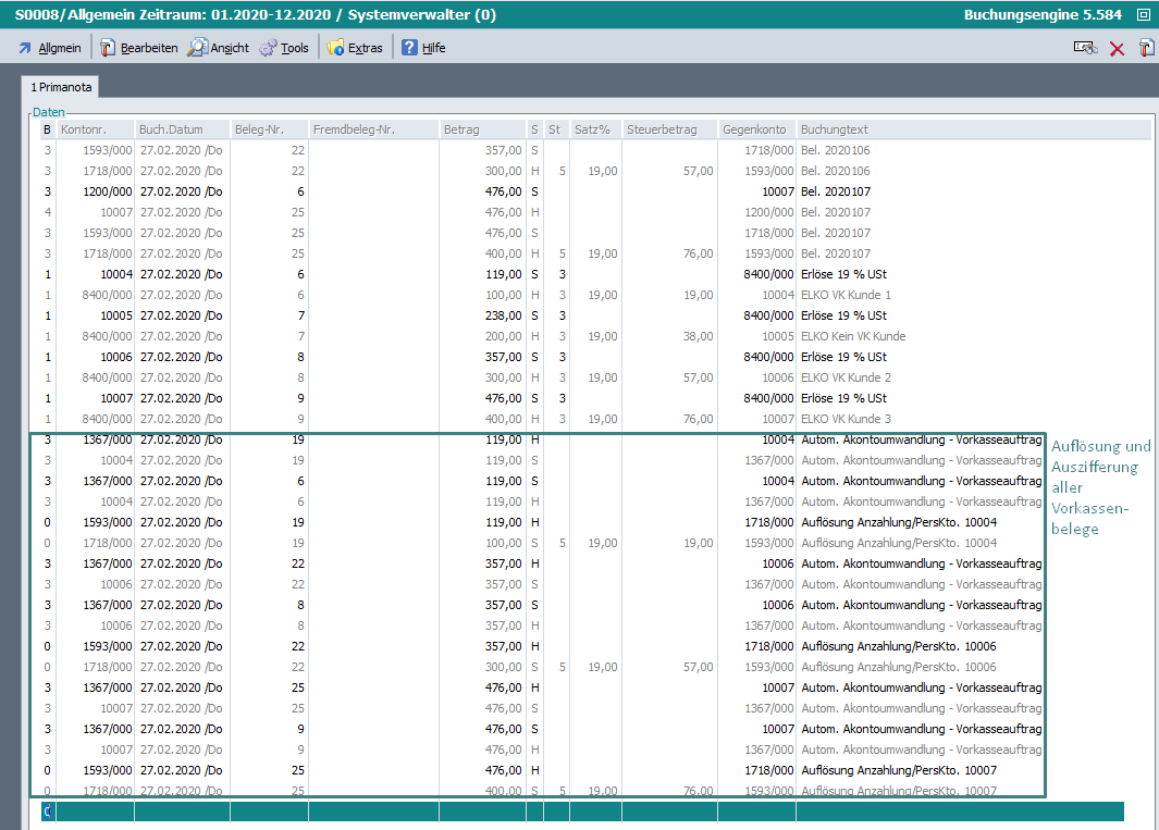 Hinweis: Bei Deaktivierung dieses Zugriffsrechts muss die Auflösung der Anzahlung manuell gebucht werden! …