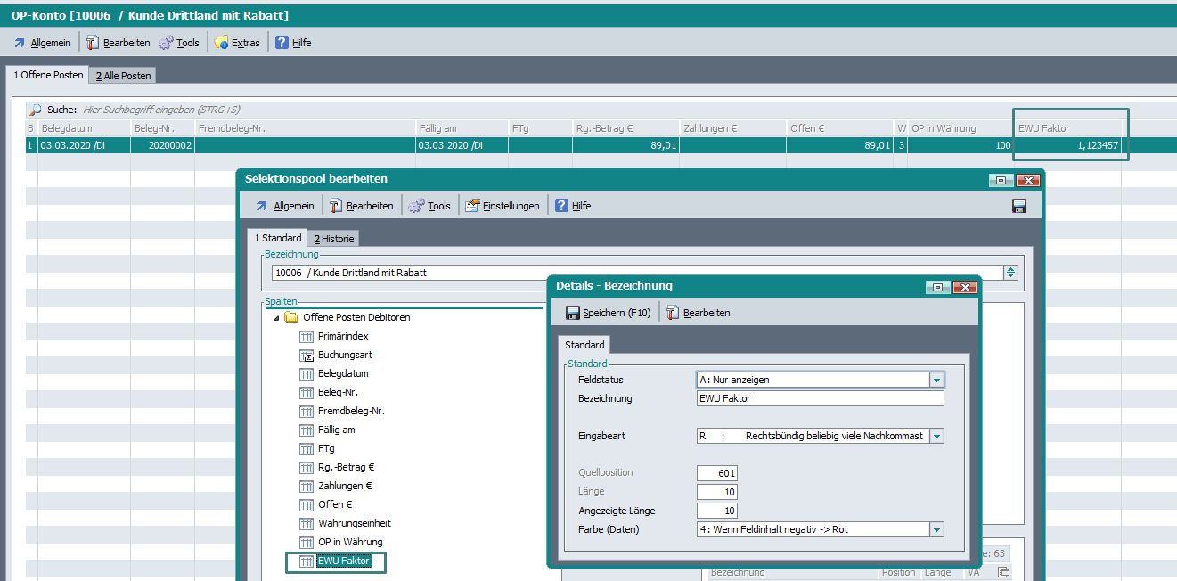 Bei Offenen Posten in Fremdwährung ist die Spalte „EWU Faktor“ (601_10) im OP-Konto leer geblieben.