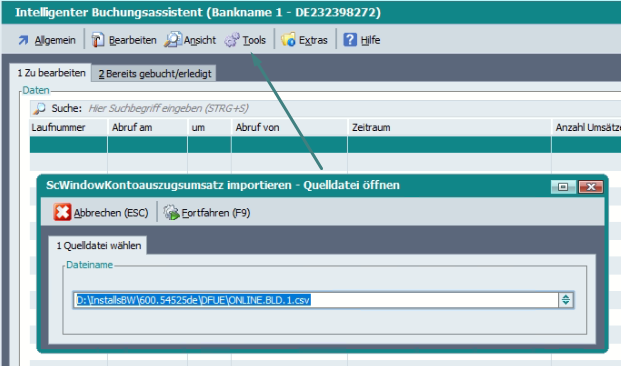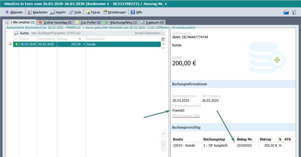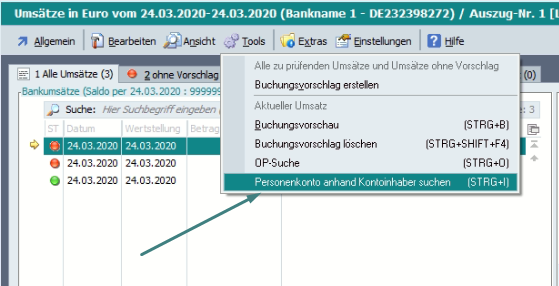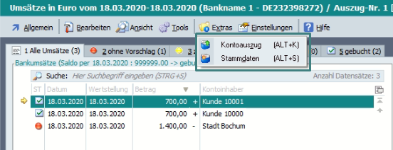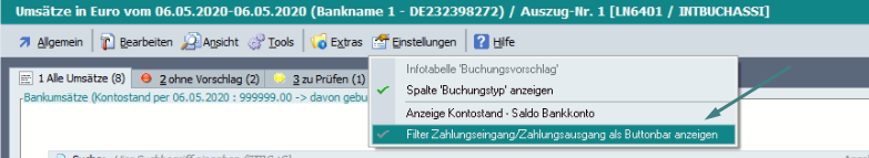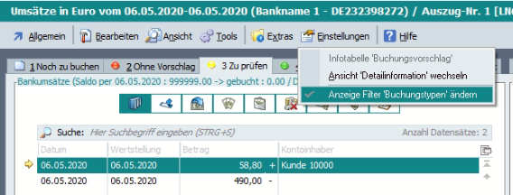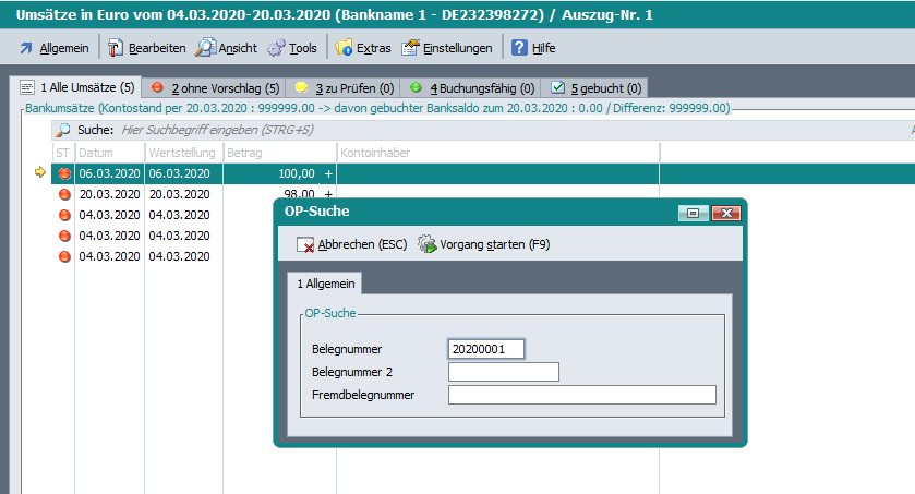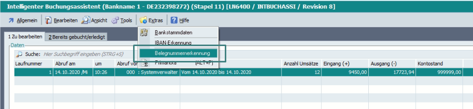 In der Tabelle der Kontoauszüge gibt es daher unter Extras > Belegnummernerkennung ein Tool: