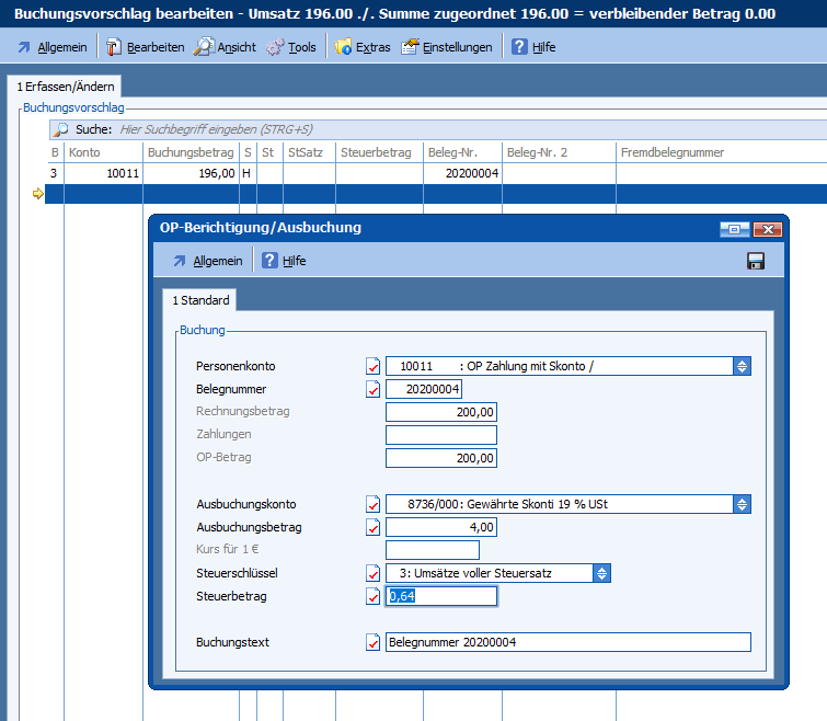 Beim Ausbuchen von Skonto über „OP-Berichtigung/Ausbuchung“ wurde die Skontobuchung verkehrt erstellt.