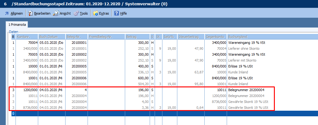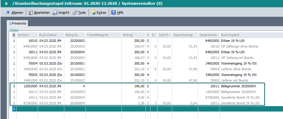 für SKR 03 der Wert 300 und für SKR 04 der Wert 400 eingetragen wurden.