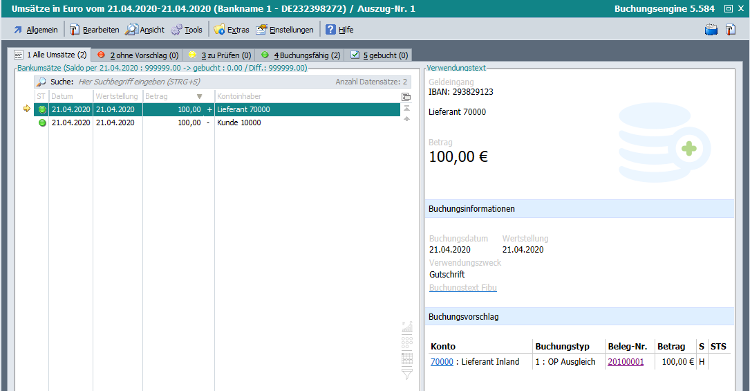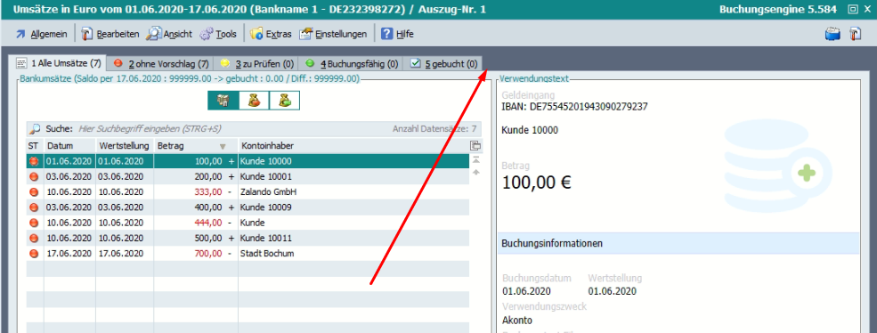 Damit kann eine erweiterte Prüfung aktiviert werden, die den Status der Umsätze bestimmt.