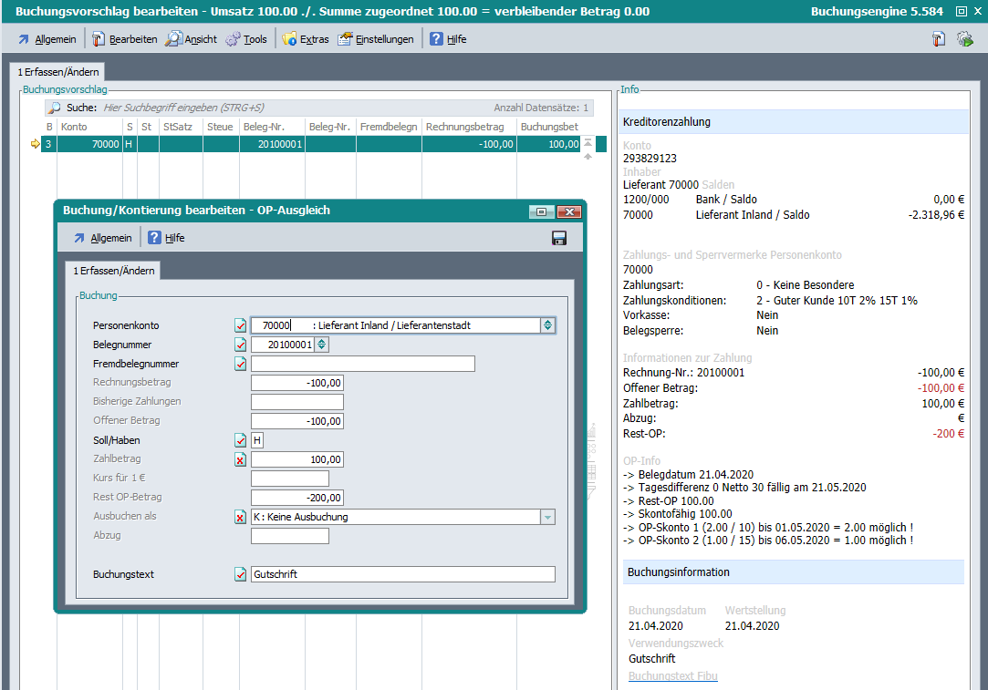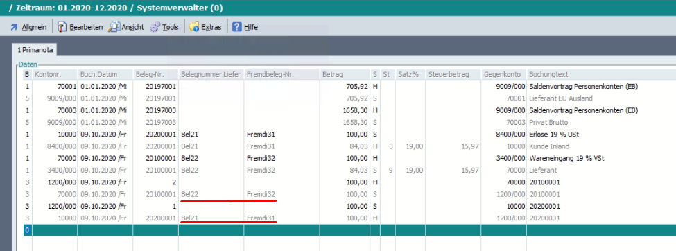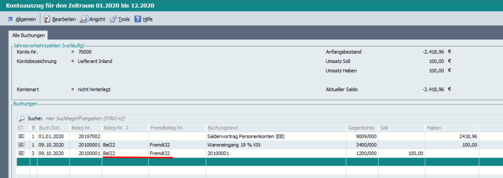 Beim Buchen von OP-Zahlungen wurde die Fremdbelegnummer/Belegnummer 3 und die Belegnummer Lieferant/Belegnummer 2 nicht in die Buchung übernommen.