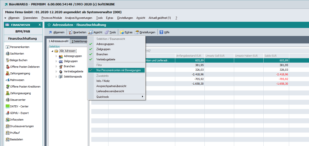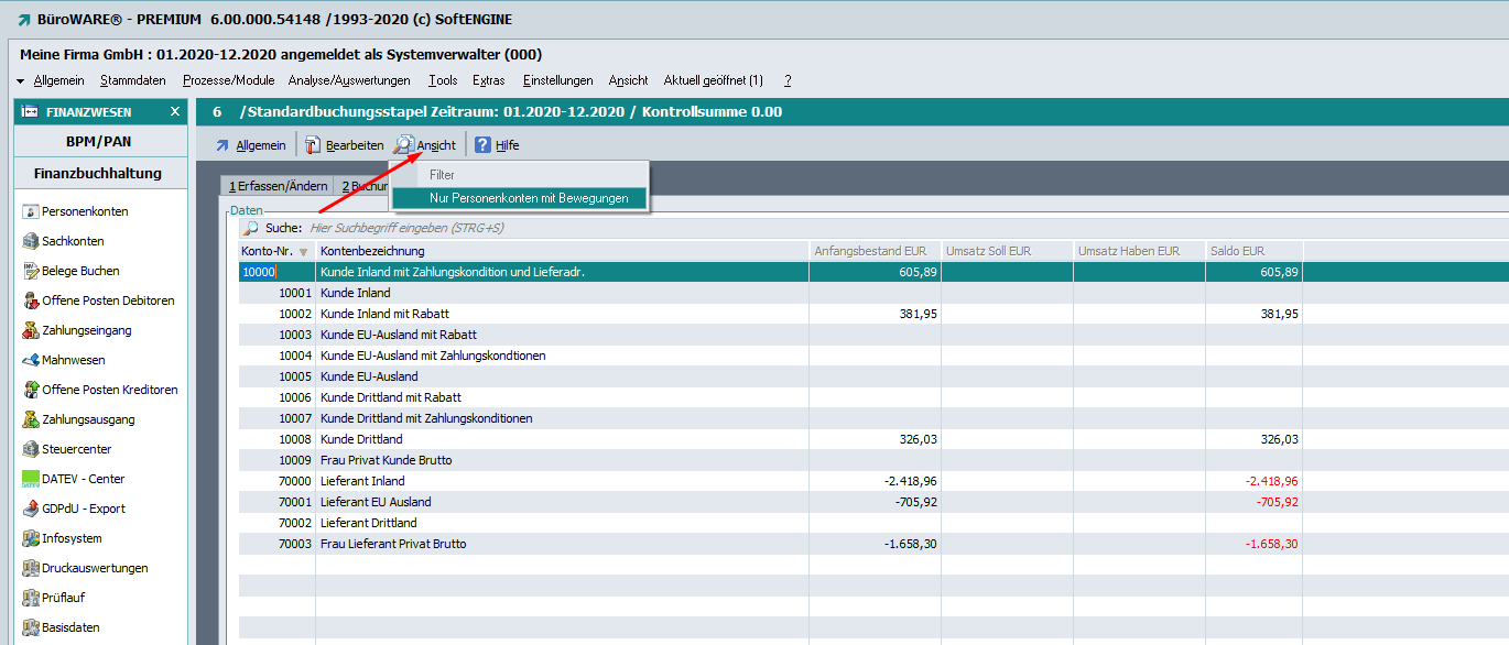 Dieser Filter wird in der Tabelle der Sachkonten und auch in der Buchungserfassung auf Karteikarte „3 Sachkonten“ unter Ansicht angeboten.