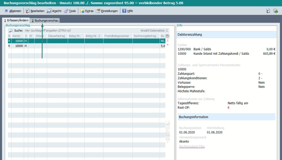 Ab Version 6.00.000.55131 gibt es auch im Dialog „Buchungsvorschlag bearbeiten“ eine Buchungsvorschau.