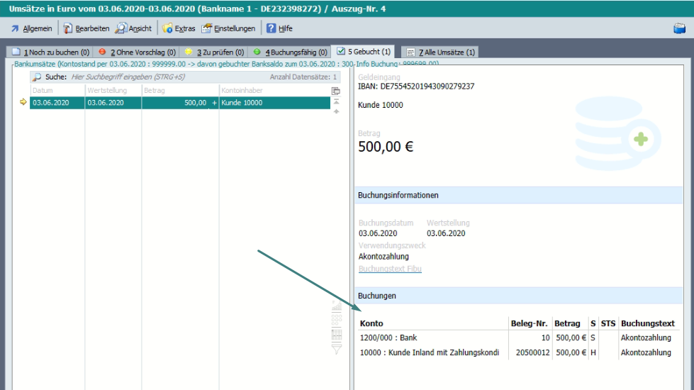 Wurde ein abgeschlossener Kontoauszug auf Karteikarte „2 Bereits gebucht/erledigt“ im Intelligenten Buchungsassistenten im Vorjahr geöffnet und wieder verlassen, wurde im Zahlungsausgang der Stapel, welcher keinen Bezug zum Auszug im Intelligenten Buchungsassistenten hatte, auf die Karteikarte „3 Zahlung abgeschlossen und Bank gebucht“ verschoben.
