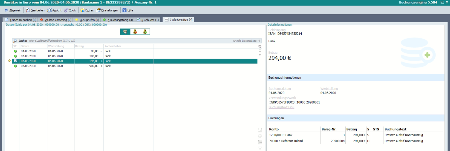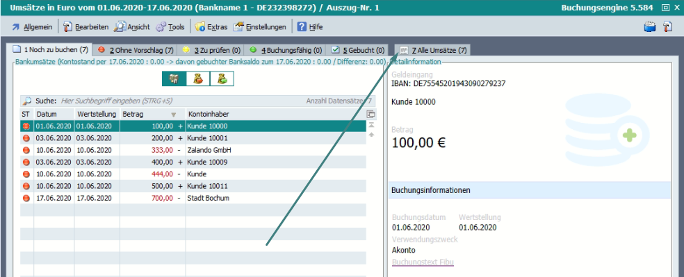 Mit aktiviertem Recht werden die Kontoauszüge in der vorgelagerten Tabelle schneller geladen.