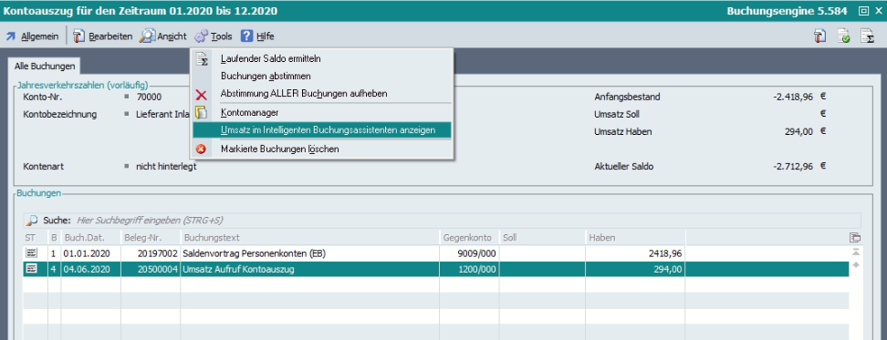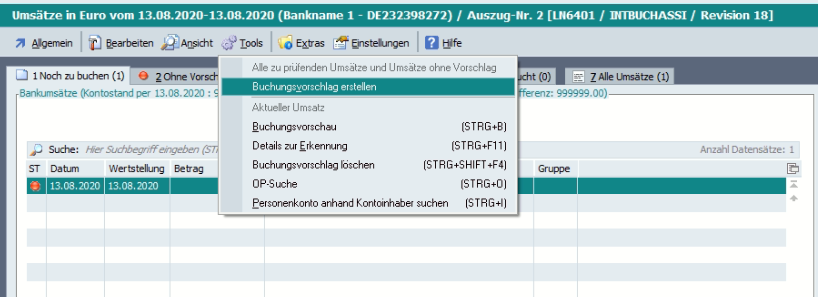 Ab Revision 58475/BETA wurde die Toolnummer 10007 „Buchungsvorschlag erstellen“ in der Umsatzauswahl aufgrund der längeren Geschwindigkeit angepasst.