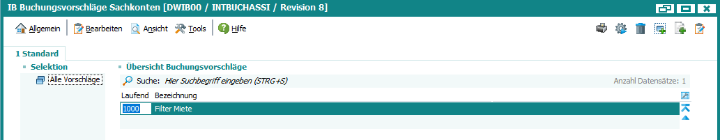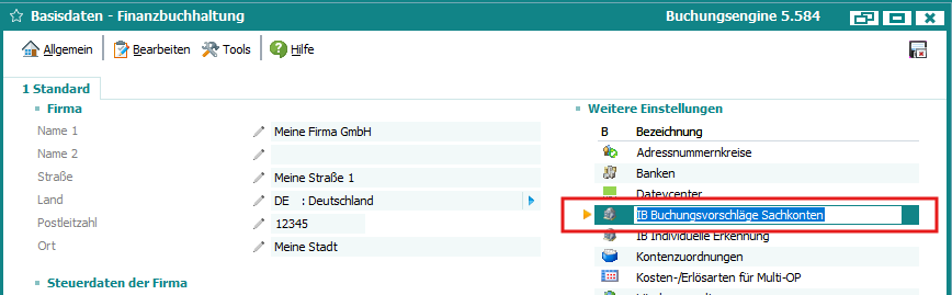 Fibu Basisdaten > Weitere Einstellungen > IB Buchungsvorschläge Sachkonten