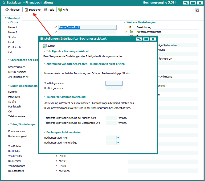 Fibu Basisdaten > Bearbeiten > Intelligenter BuchungsassistentÂ