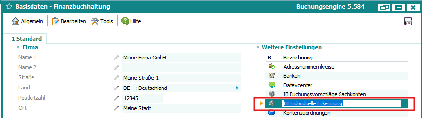 Fibu Basisdaten > Weitere Einstellungen > IB Individuelle ErkennungÂ