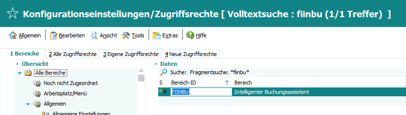 Designer > Einstellungen > Konfigurationseinstellungen/Zugriffsrechte > Zugriffsrechtebereich FIINBUÂ